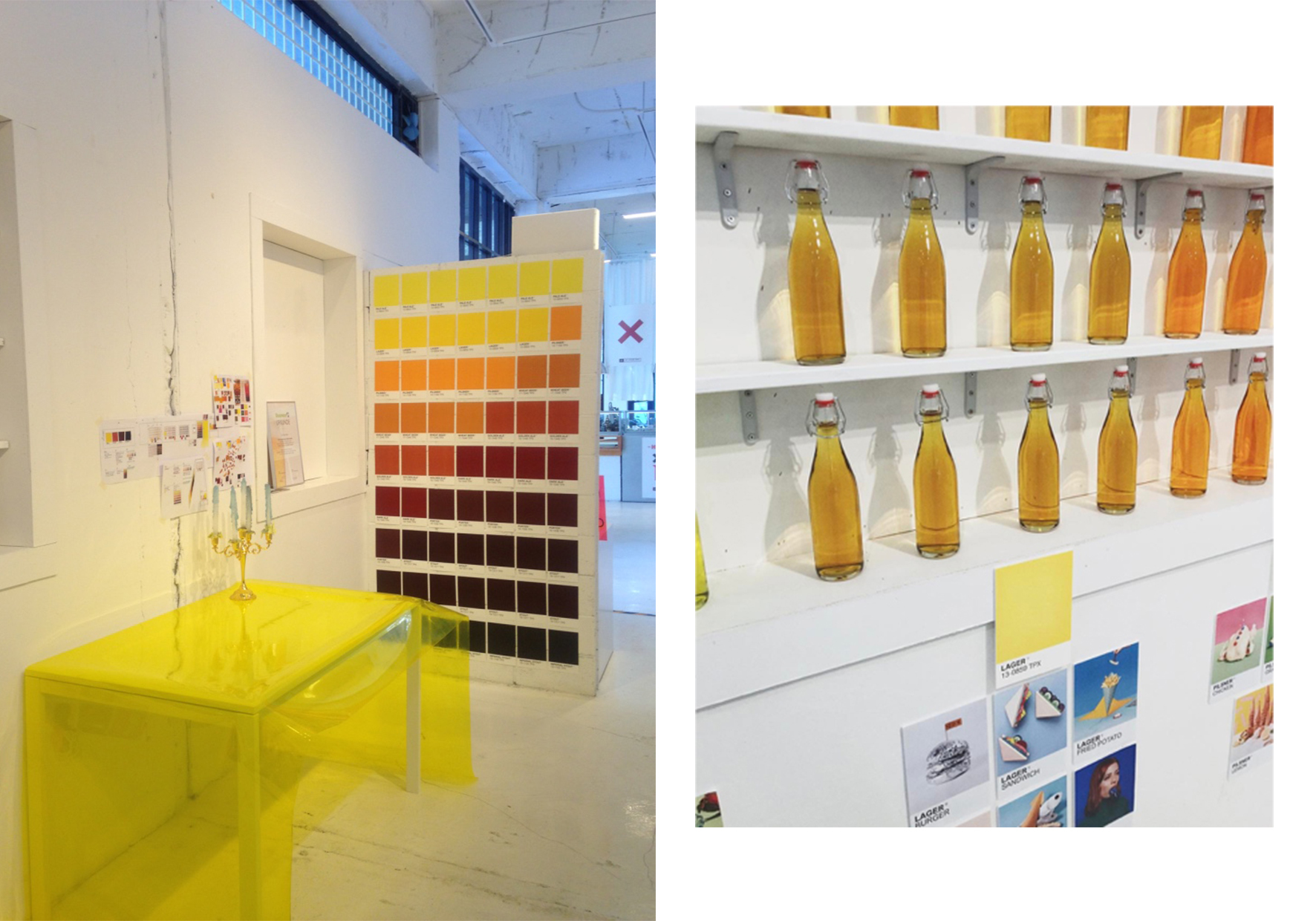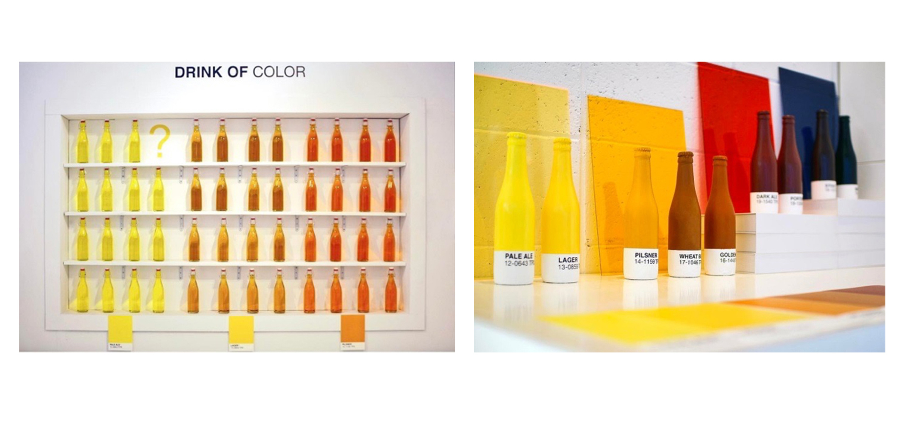 팬톤칩이라는 요소와 결합하여 맥주를 새로운 컬러의 소재로 사용함으로써